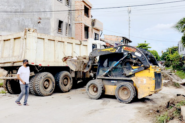 Continuando con el trabajo de limpieza de sifones, personal de la Sub Gerencia de Saneamiento con pala y escobas en mano junto a la maquinaria como volquete y minicargador de la Municipalidad de Maynas procedieron a retirar todos los desechos que encontraron en los sifones. Gran cantidad de tierra, maleza y residuos sólidos se recogió en este trabajo, desechos que lamentablemente los mismos vecinos arrojan en el lugar, lo que muchas veces provoca que las calles se inunden cuando llueve.