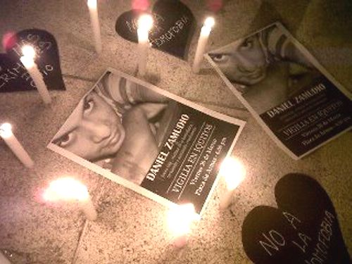 Desde las seis de la tarde, un grupo de jóvenes integrantes de la comunidad LGTB de Iquitos, llegaron hasta la plaza de Armas para realizar una vigilia en memoria del joven chileno Daniel Zamudio, quien lamentablemente murió hace algunos días luego que jóvenes neonazis lo agredieron violentamente por el solo hecho de ser Gay.