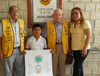 “Cartel de la Paz” con el propósito de incentivar a los jóvenes de 11 a 13 años de edad, a expresar por medio del dibujo su concepto de lo que es la paz.“Cartel de la Paz” con el propósito de incentivar a los jóvenes de 11 a 13 años de edad, a expresar por medio del dibujo su concepto de lo que es la paz. El tema pictórico del concurso 2017-2018 es “El Futuro de la Paz” que se ejecuta a través de los Clubes de Leones del mundo, patrocinando colegios o agrupaciones juveniles, este año el Club de Leones de Iquitos a través del comité “Cartel de la Paz” integrado por los Leones Raúl Suárez, Roldán Vigo, Félix Ordóñez y Emilio Filomeno Vigil patrocinó al Centro Educativo Nº 601411 “Melvin Jones”.Teniendo como participante al alumno del quinto grado Gabriel Edgardo Guzmán Jaramillo de 11 años de edad, cuyo dibujo ha sido enviado a la Gobernación H4 de Clubes de Leones para competir a nivel nacional y luego a nivel internacional, gracias al apoyo de la directora del plantel Sra. Karim Hidalgo.Premios: