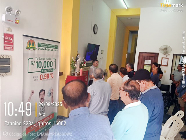 La ceremonia litúrgica se realizó en la sede institucional ubicada en la segunda cuadra de la calle Fanning y fue presidida por el capellán de la Región Policial Loreto. Directivos, socios y destacadas personalidades se unieron en un acto de fe y gratitud. Entre los asistentes estuvo el Suboficial Superior PNP (r) Nicanor Vásquez Alegría, vicepresidente nacional de la COOPAC Santa Rosa y presidente del Comité de Educación, además de conductor del programa “La Hora Amazónica” en Radio Sabor Mix.