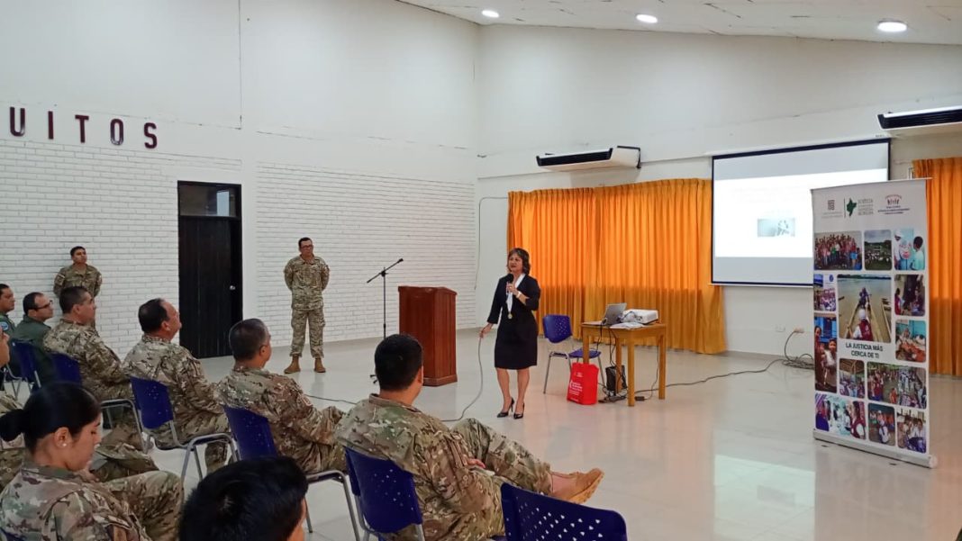La Corte Superior de Justicia de Loreto, a través de la Magistrada Gabriela Ramírez Reátegui, Jueza del Juzgado de Familia Transitorio Sub Especializado en Violencia Contra las Mujeres e Integrantes del Grupo Familiar de la Provincia de Maynas, realizó una capacitación sobre la Ley 30364 Prevención y Sanción de Violencia Contra la Mujer y Grupo Familiar, dirigido al personal militar de oficiales, técnicos y suboficiales del Grupo Aéreo N° 42 de la Fuerza Aérea – FAP.