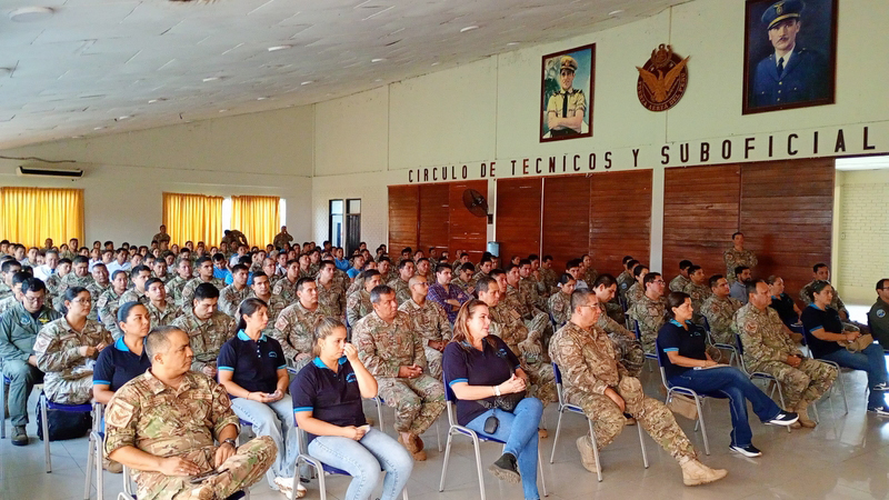 La magistrada Gabriela Ramírez Reátegui Jueza del Juzgado de Familia Sub especializado en Violencia Contra las Mujeres e Integrantes del Grupo Familiar, e integrante de la Comisión Distrital de Acceso a la Justicia de Personas en condición de Vulnerabilidad y Justicia en tu Comunidad, llevó a cabo una conferencia especializada dirigido a las cónyuges de los oficiales, técnicos y sub oficiales, y personal también de la Fuerza Aérea del Perú FAP, del Grupo N° 42.