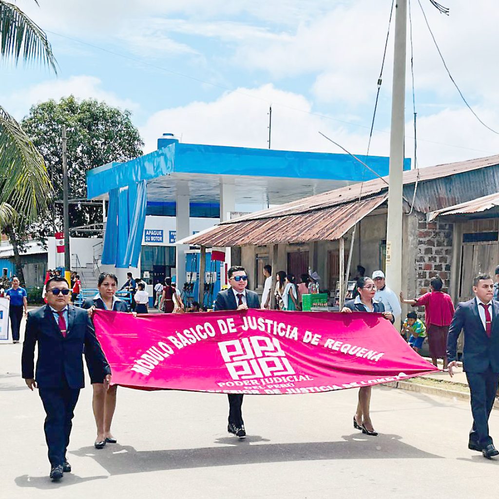 Personal jurisdiccional y administrativo del Módulo Básico de Justicia de Requena participó en el Desfile Cívico con motivo de conmemorarse el 118° Aniversario de fundación e historia de la provincia de Requena.