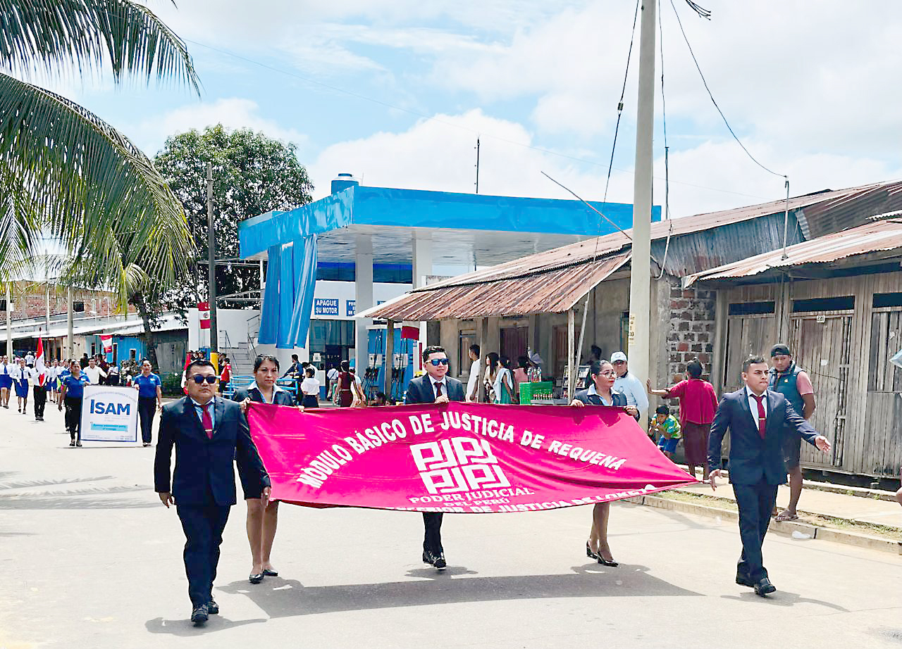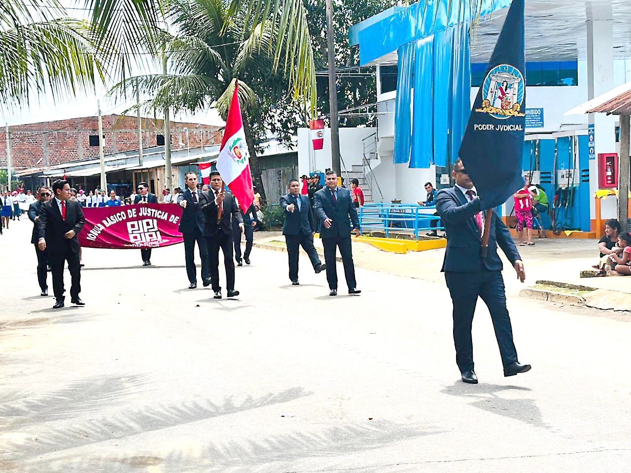 Personal jurisdiccional y administrativo del Módulo Básico de Justicia de Requena participó en el Desfile Cívico con motivo de conmemorarse el 118° Aniversario de fundación e historia de la provincia de Requena.
