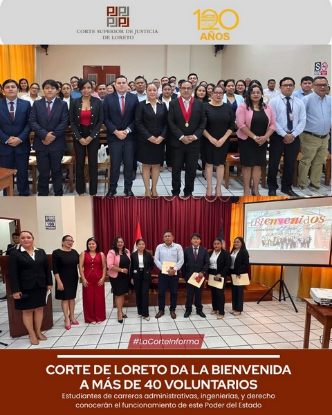 La Corte Superior de Justicia de Loreto dio inicio al Programa de Voluntariado Judicial 2026 – I con la recepción y bienvenida de 44 jóvenes interesados en conocer de cerca el funcionamiento del sistema judicial y contribuir al servicio de justicia.