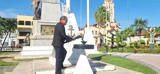 El acto estuvo presidido por el Dr. Reynaldo Elías Cajamarca Porras, quien tuvo el alto honor de izar el pabellón nacional y encender la lampara votiva, que simboliza la perennidad del amor a la patria, el sacrificio de los héroes nacionales y la defensa de la libertad.