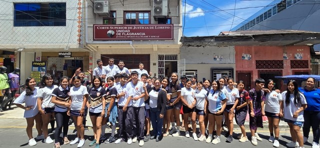 La Corte Superior de Justicia de Loreto, recibió a un numeroso grupo de estudiantes de la I.E. N° 601050 Micaela Bastidas como parte del programa “Ruta del Adolescente en Conflicto con la Ley Penal”, con el propósito de realizar un recorrido por las instalaciones de la Unidad de Flagrancia Delictiva y conocer en el sitio la actividad judicial. El Presidente de la Corte Superior de Justicia de Derecho, Dr. Reynaldo Elías Cajamarca Porras, recibió a los estudiantes y explicó a ellos sobre las implicancias de las conductas y sus posibles complicaciones.