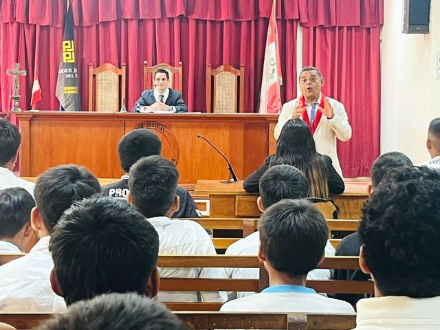 La Corte Superior de Justicia de Loreto, recibió a más de 35 estudiantes de la I.E, Malvinas, los cuales participan en el programa “Ruta del Adolescente en conflicto con la ley penal” motivado por la Fiscalía Provincial de Prevención del Delito de Loreto con el propósito de concientizar en los jóvenes con el conocimiento de las implicancias de estar inmersos en casos de barras bravas y pandillaje.