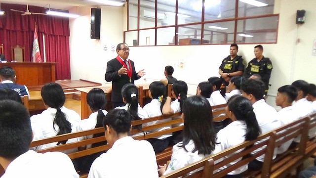 Alrededor de 35 estudiantes visitaron ayer lunes, las instalaciones de la Corte de Loreto, como parte del programa “Ruta del Adolescente en Conflicto con la Ley Penal”, acompañados del Lic. Nixon Ruiz Torres, director del centro educativo; quien motivó la asistencia de sus alumnos a participar en las visitas a las diferentes instituciones que actúan durante el proceso penal.