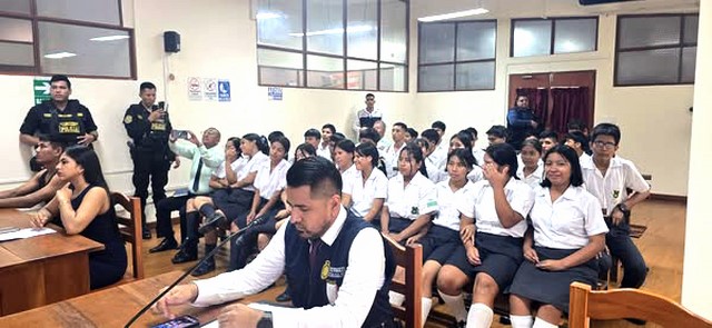 La “Ruta del Adolescente en Conflicto con la Ley Penal”, desde la intervención policial, diligencias fiscales, audiencia penal y reclusión en el centro penitenciario, permitió a los estudiantes de la I.E. N.° 60057 Petronila Perea de Ferrando, conocer las etapas e implicancias de un proceso judicial penal.