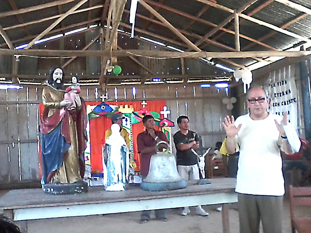 Todos los presentes le observamos atentamente, y valorábamos el enorme esfuerzo físico que había hecho. Me pareció verlo como encontrándose frente a uno de los frutos de sus investigaciones, desvelos y preocupaciones, desarrolladas durante las últimas décadas en la Amazonía. Luego revisó minuciosamente el estado de las reliquias y con gran vigor hizo tañer la campana, cuyo sonido nos transmitía sus emociones.