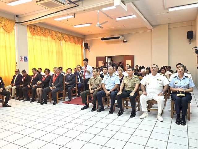 La sesión solemne se realizó a las once de la mañana en el auditorio de la sede central, con la presencia de autoridades regionales y representantes de diversas instituciones. Acompañó la Dra. Mery Lidia Aliaga Rezza, presidenta de la Junta de Fiscales Superiores de Loreto; Germán Vladimir Chong Ríos, alcalde provincial de Maynas; general de División EP Miguel Ángel Álvarez Villalobos, comandante general de la V División del Ejército; contralmirante César Tello Berenstein, comandante de la Quinta Zona Naval; mayor general FAP Carlos Eduardo Cerna Barra, comandante general del Ala Aérea N.º 5; y general PNP Fernando Enrique Mego Avellaneda, jefe de la IV Macro Región Policial Loreto.
