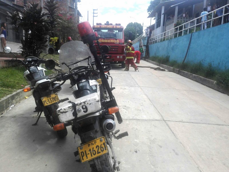 Una llamada a la base del 105 alertó a los agentes del escuadrón de emergencia de la policía nacional, quienes se constituyeron hasta una vivienda ubicada en la prolongación Grau, distrito de Belén, donde se producía un amago de incendio, al parecer, producto de un corto circuito en el interior del inmueble.
