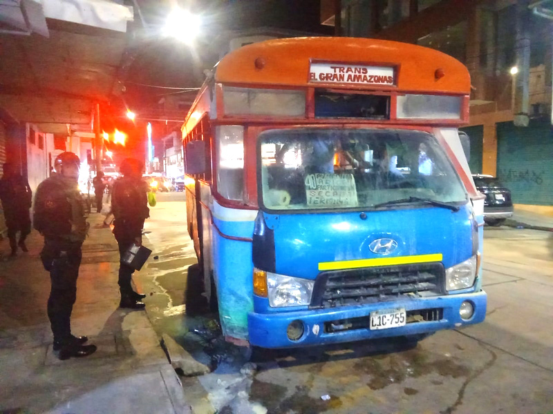 Un colectivo de la empresa de transporte público urbano El Gran Amazonas sufrió un incendio la noche del pasado martes mientras realizaba su recorrido en la ciudad de Iquitos. El incidente se produjo en la intersección de la avenida Miguel Grau con la calle 9 de Diciembre, cuando la unidad de transporte público, con pasajeros a bordo, registró un cortocircuito en su tablero.