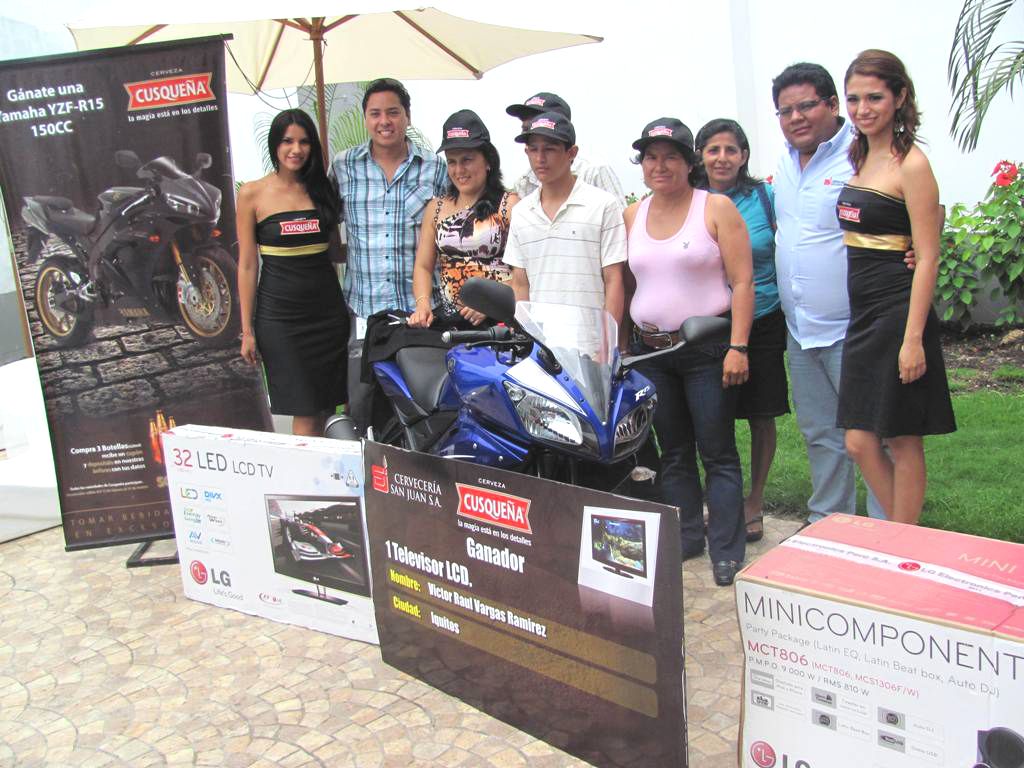 Fueron premiados los consumidores María Andrea Torres Tello (motocicleta); Franco Willer Leveau Laulate (10 cajas de cerveza Cusqueña) y Fausto Chumbe Aguilar (5 cajas de cerveza Cusqueña).