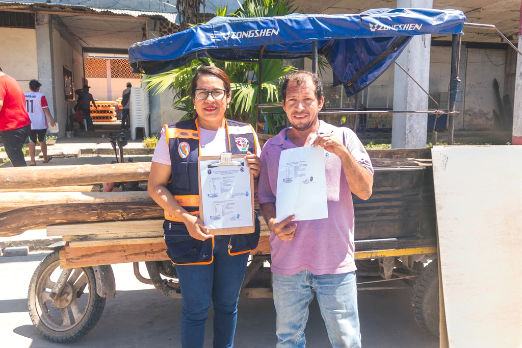 En ese sentido, el personal de Defensa Civil, que encabeza la Ing. Danna Isabel Flores Peña, hizo las gestiones respectivas para hacer entrega de materiales a la familia afectada por los vientos huracanados, situado en la calle 22 de Mayo, en el asentamiento humano “Los Cocos”.