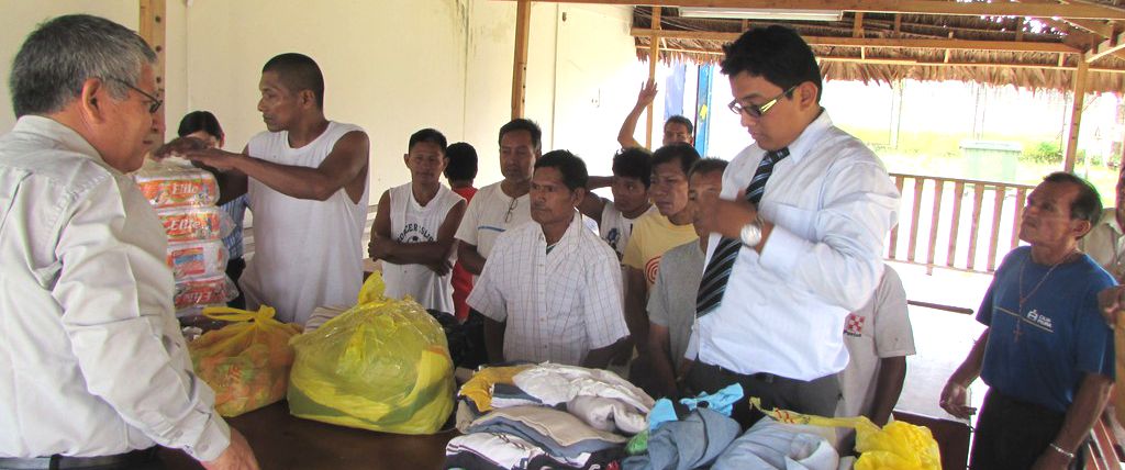 Antes de la entrega del donativo en la maloca del Establecimiento Penal, el representante de la Corte y personal del INPE, procedieron a la entrega, teniendo cuidado de que lo conseguido llegue a todos. Este gesto de la CSJLO fue agradecido por los internos, quienes además presentaron al Dr. Mercado, documentos donde se muestra que sus procesos todavía están en marcha, en varios casos estancados.