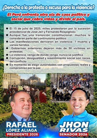 La semana pasada, el miércoles 15 de julio de 2025, parte de la población del país volvió a salir a las calles en las diferentes regiones para levantar su voz de protesta contra las autoridades de turno del gobierno, a raíz del ascenso del nuevo presidente de la República José Jerí y del nuevo presidente del Congreso Fernando Rospigliosi.