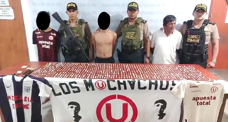 Durante la intervención, los agentes hallaron 1,006 ketes de pasta básica de cocaína (PBC), los cuales estaban ocultos en bolsas bajo un colchón y dentro de una mochila. Asimismo, se incautaron banderolas con los colores del club Universitario de Deportes, lo que refuerza la hipótesis de que el grupo tenía nexos con barristas.