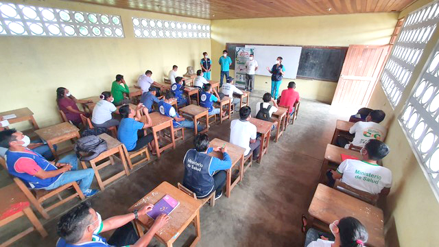 La Dirección Regional de Salud, DIRESA Loreto, a través de la Dirección Ejecutiva de Promoción de la Salud en coordinación con la Estrategia Regional de Metaxenicas y Zoonosis, desarrolló el taller de capacitación sobre “Promoción, prevención, diagnóstico y tratamiento de malaria, dirigido a 40 agentes comunitarios de salud y personal de salud, de las comunidades de Santa María, Auchiri, Vencedores, Angoteros, Sarayacu, Puerto Elvira Guajoya, Samuna Bula, Chingana, Dos Fronteras, Tempestad, Ingana, San Juan de Miraflores y Estirón, en el marco del plan “Malaria Cero”, en la comunidad de Angoteros, distrito de Torres Causana.