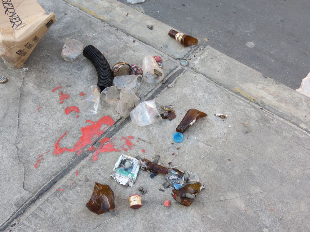 En la berma central se pudo notar vasos y botellas rotas que los sujetos en completo estado etílico habían utilizado para agredirse mutuamente, incluso uno de los pleitistas era un efectivo de la policía nacional del Perú en actividad, quien al ver que un grupo de sujetos intentaban agredirlo tuvo que subirse al patrullero de sus colegas para ser protegido y luego llevarlo hacia otro lugar. Los vecinos del sector exigieron a las autoridades que pongan «mano dura» contra estos antros que cada día provocan más de un dolor de cabeza para los moradores de este sector (C. Ampuero)