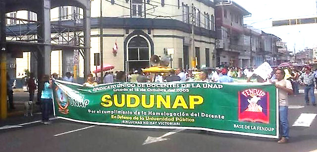 Los agremiados del Sindicato Único de Docentes de la Universidad Nacional de la Amazonía Peruana (SUDUNAP) iniciaron hoy, lunes 10 de noviembre, una huelga nacional indefinida como parte de la medida acordada por la Federación Nacional de Docentes Universitarios del Perú (FENDUP). La protesta busca llamar la atención del Gobierno ante la falta de avances en temas de homologación de sueldos, respeto a los derechos laborales y financiamiento adecuado para las universidades públicas.