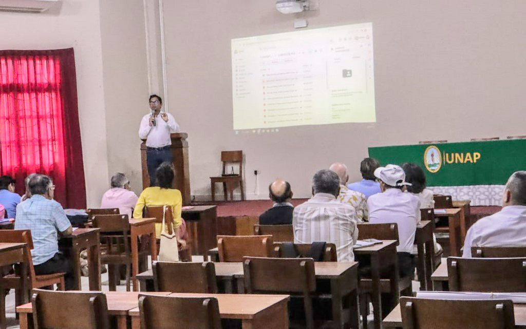 La mañana del lunes 31 de julio del 2023, los trabajadores docentes y administrativos de la Facultad de Ciencias de la Educación y Humanidades (FCEH) de la Universidad Nacional de la Amazonía Peruana (UNAP), fueron capacitados en el uso de las plataformas digitales “Myloft, Pivot, Turnitin e Indico”, por parte del Vicerrectorado de Investigación, mediante su Dirección de Gestión de la Investigación (DGI); evento que se realizó en el auditorio del Centro de Referencia e Información de Suelos de la Amazonía Peruana (CRISAP-UNAP), ubicado en el Jirón Putumayo 381, distrito de Iquitos.