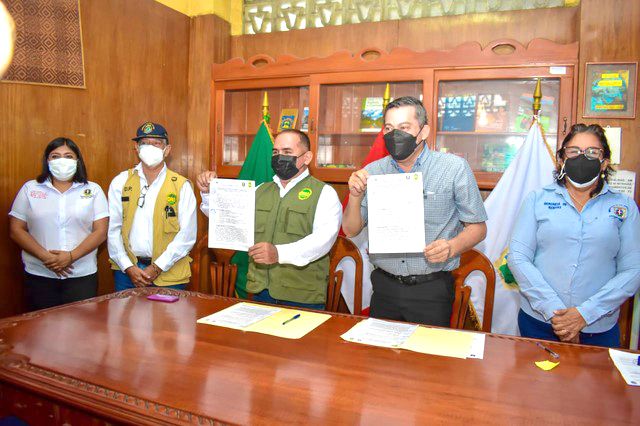 Con el objetivo de implementar y contribuir conjuntamente el desarrollo agrario en el distrito de San Juan Bautista, así como el de fortalecer las cadenas productivas, sistema de información agraria y organizaciones de productores agrarios y la conservación de los recursos naturales, la mañana de ayer en la sala de reuniones de alcaldía de la MDSJB, se firmó un importante convenio entre la Dirección Regional Agraria representada por el ingeniero Leo Dan Ríos y la Municipalidad Distrital de San Juan Bautista representado por su alcalde José Martín Arévalo Pinedo. Estuvieron presentes también en la firma de convenio la gerente municipal Dora Vigo, el abogado Urfiles Pérez de la DRAL, entre otros funcionarios.