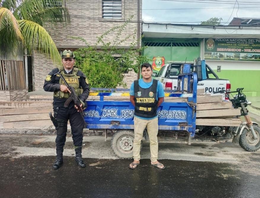 Fue así que en el Puerto Porvenir en el sector de Pampachica – Distrito de Iquitos – Provincia de Maynas – Departamento de Loreto, lograron intervenir a Aurelio Jefferson Calampa López (35), quien conducía un Motofurgón con placa de rodaje Nº 4545-DB, transportando Piezas de madera motoaserrados.