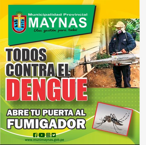 Una vez más la Municipalidad Provincial de Maynas y su alcalde Francisco Sanjurjo Dávila, se unen para luchar contra la enfermedad del dengue, es así que se une al trabajo que vienen realizando la Dirección Regional de Salud y el Centro de Operaciones de Emergencia Regional a través de la Gerencia de Saneamiento y la división de Defensa Civil de la provincia con personal para sensibilizar casa por casa sobre las consecuencias que conlleva contraer esta enfermedad y permitan ingresar a los fumigadores a sus viviendas, además de aportar con las moto mochilas hasta la culminación de la campaña de fumigación en toda la ciudad.
