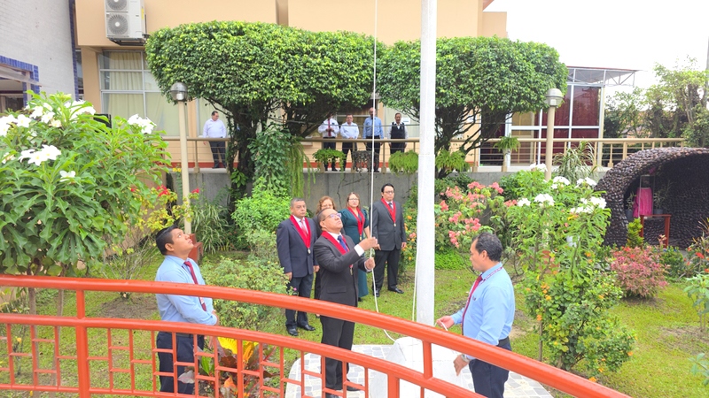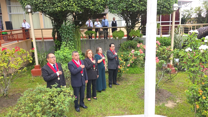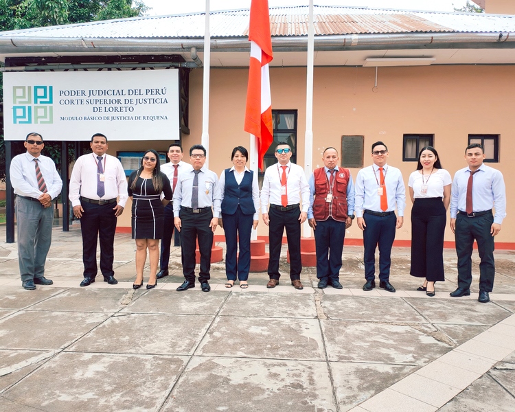 El magistrado Reynaldo Elías Cajamarca Porras, presidente de la Corte Superior de Justicia de Loreto, junto a jueces y personal jurisdiccional y administrativo, a las 7:30 de la mañana en punto, realizó la ceremonia de izamiento del Pabellón Nacional en el frontis de la institución, acto cívico-patriótico es obligatorio dispuesto mediante D.S. N° 127-2025-PCM, que reafirma el respeto por los símbolos patrios, la soberanía y la identidad nacional.