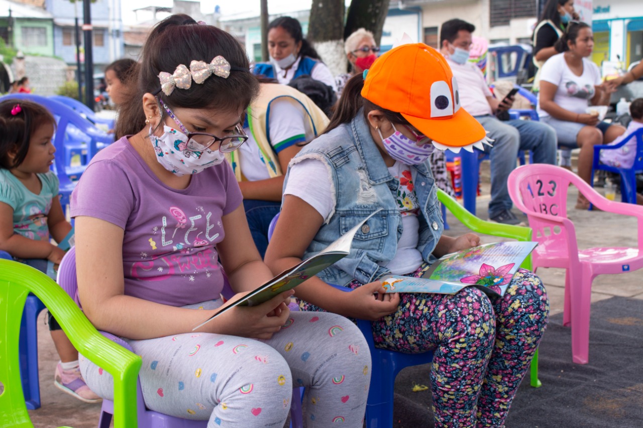 Cumpliendo con los protocolos de bioseguridad por la Covid -19, los “Sábados de lectura al aire libre”, se desarrollan todos los sábados de seis de la mañana hasta el mediodía. Se cuenta con los módulos de poesía, narrativa, retrolectura como revisas de condorito y Batman.