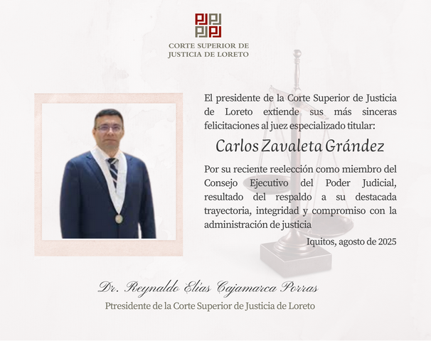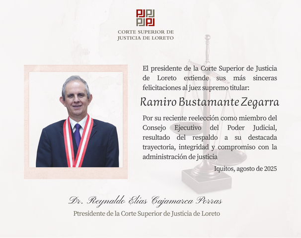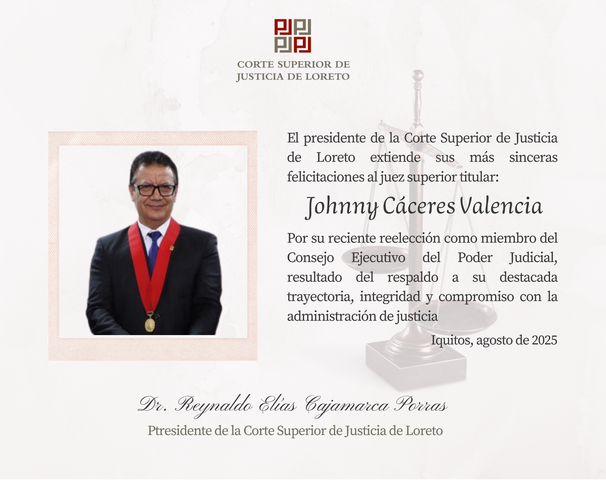 El magistrado Reynaldo Elías Cajamarca Porras, en su calidad de Presidente de la Corte de Loreto participó de los jueces representantes ante el Consejo Ejecutivo del Poder Judicial. Cabe resaltar que dicha elección se realiza mediante sufragio directo y secreto.