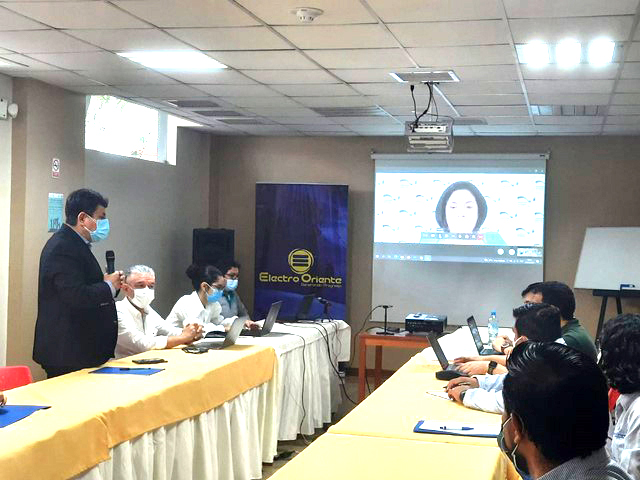 El Ing. Martín Salazar Rojas, Gerente General de Electro Oriente dio la bienvenida a este evento expresando su satisfacción por haber sido elegidos para iniciar este importante proyecto; asimismo, mediante enlace Microsoft Teams, la Dra. Ana Moreno, representante de la Cooperación Alemana al Desarrollo – GIZ dio alcances del taller, cuya inauguración vía enlace Microsoft Teams estuvo a cargo del Ing. Carlos Bonilla, Director General de Eficiencia Energética del Ministerio de Energía y Minas.