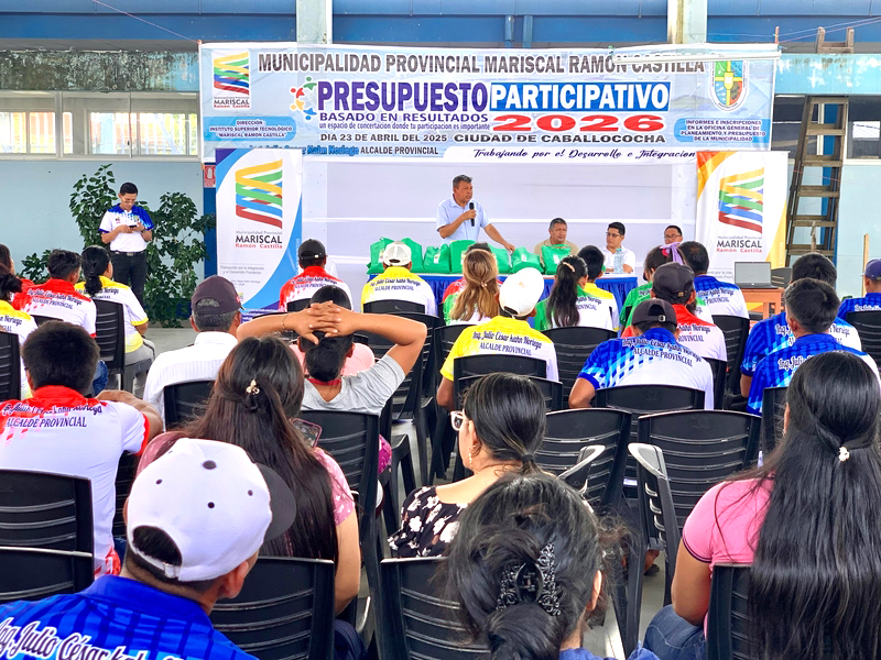 La Municipalidad Provincial de Mariscal Ramón Castilla, a través de la Gerencia de Planeamiento y Presupuesto, ha desarrollado el Taller del Presupuesto Participativo basado en resultados año fiscal 2026, contando con la participación del alcalde provincial, miembros del concejo municipal, el gerente municipal y mesa de honor estuvo presidida por el alcalde de la provincia, Ing. Julio César Kahn Noriega, la regidora, Raquel Rodríguez Suárez, el Gerente Municipal, Ing. Carlos Eduardo Chávez Ruiz, el gerente de Servicios Municipales y Gestión Ambiental, Abog. Ghiro Miranda Quispe y el Lic. Adm. Eddy Parra Rodríguez, Gerente de Planeamiento.
