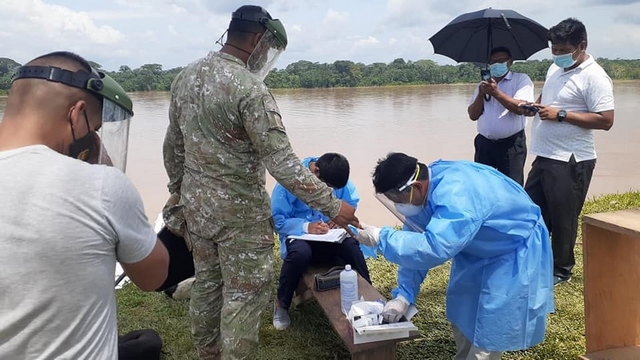 A mérito del mismo, el personal PNP de esta la comisaría sectorial “Soplin Vargas”, en conjunto con el personal de Migraciones, del ejército peruano y Centro de Salud del lugar, realizaron un exhaustivo control de pasajeros que llegan de la ciudad de Iquitos mediante vía aérea a esta localidad, realizándose el tamizaje correspondiente por parte del C.S “Soplin Vargas” y desinfección a los pasajeros y de igual forma la desinfección de la carga recibida y remitida, realizándose la prueba rápida a los cinco pasajeros que arribaron a la localidad de Soplin Vargas, con resultados NEGATIVOS.