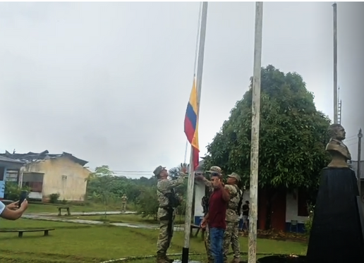 La noticia tuvo alcance nacional. Una bandera colombiana fue izada en el mástil principal de la plaza de la comunidad de Tres Fronteras (Gueppi), donde a menos de 2 kilómetros hay una base del Ejército y un poco antes de la Marina de Guerra.