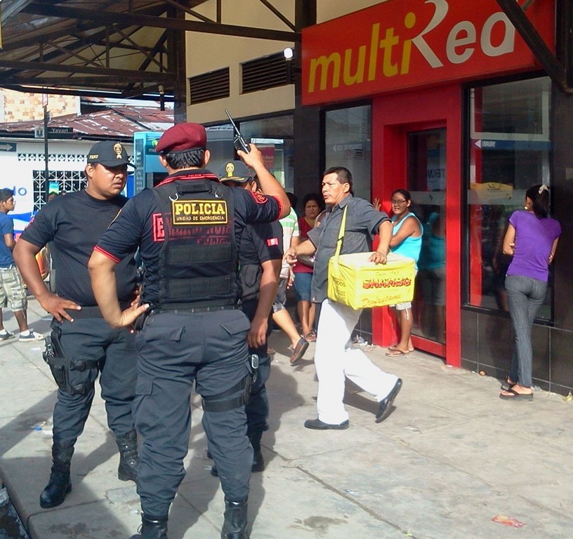 Sigue la ola de asaltos en Iquitos. En tres días asaltantes se llevan más de 115 mil soles en atracos en diferentes sectores de la ciudad. El primero fue en la calle Bermúdez con pasaje José Olaya a un cambista, el día martes asaltaron a un trabajador del municipio de Maquía y ayer cerca de las 11 de la mañana una mujer fue víctima de asalto en la calle Távara. A plena luz del día y cuando pretendía depositar 40 mil soles en el local «Inversiones MOB» ubicado en la tercera cuadra de la calle Távara, Selva María Vásquez Hidalgo (31), trabajadora del municipio distrital de Trompeteros, fue encañonada con una pistola por dos sujetos que se habían bajado de una moto honda modelo RX de color blanco y que también portaban cascos del mismo color y le exigieron que le dieran la cartera donde tenía el dinero en efectivo. La víctima se encontraba sentada en una banca de este local al momento que sucedió el asalto. Según testigos, los sujetos habían seguido a la mujer desde un banco de dónde sacó el dinero, es decir, le habrían hecho un reglaje desde tempranas horas de la mañana y cuando entró a este centro de inversiones, los asaltantes, consumaron el hecho dándose a la fuga por rumbo desconocido. Al lugar llegó personal policial del DEPINCRI y el fiscal de turno para realizar las diligencias del caso. Hasta el momento de estos tres asaltos registrados en esta semana no se han dado con los autores del hecho delictivo. Pasando todo esto a una estadística más para las paginas policiales. (C. Ampuero)