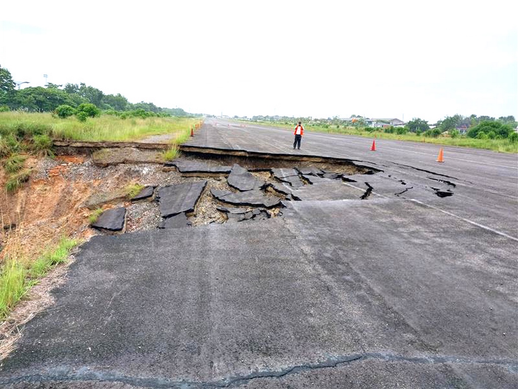 Este hecho, aunado a la acumulación de sedimentos y basura, ha ocasionado el embalse continuo del terraplén (que soporta parte de la pista de aterrizaje), provocando su erosión y el consecuente colapso de parte de la pista 27 del Aeropuerto de Yurimaguas.