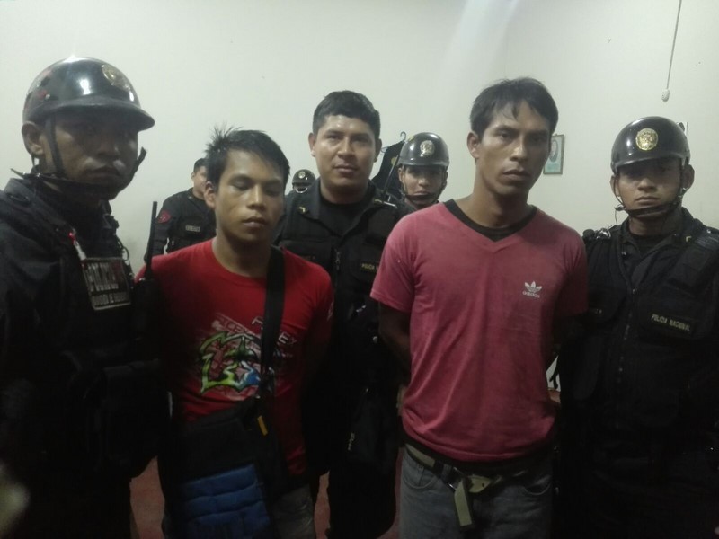 Estas personas fueron identificadas como Nilo Torres Mosquera (32) y Dennis Torres Ipushima (38, quienes según la policía pertenecerían a la banda delictiva «Los buitres Armados». Ambos sujetos fueron llevados al Departamento de Investigación Criminal-DEPINCRI para las investigaciones conforme a ley.