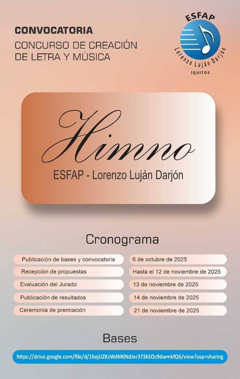 La Escuela Superior de Formación Artística Pública (ESFAP) “Lorenzo Luján Darjón”, de Iquitos, celebrará su 63° aniversario con una variada programación cultural y académica, reafirmando su compromiso con la formación integral de profesionales de la educación artística en el corazón de la Amazonía peruana.