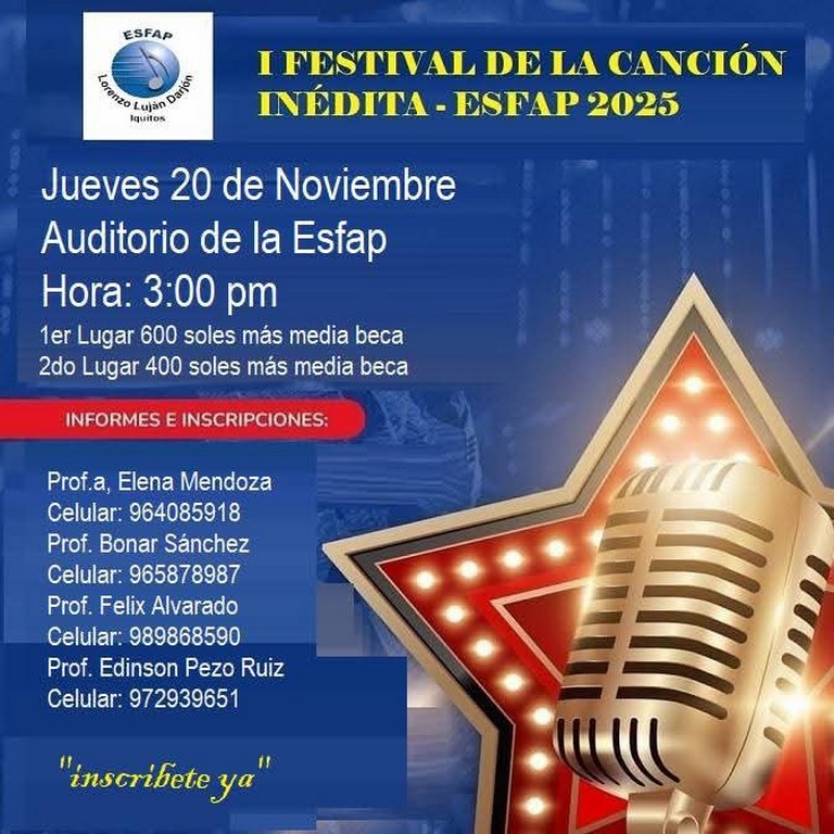 La programación continuará el jueves 20 con el Festival de Canciones Inéditas ESFAP 2025 y la presentación del II Poemario Estudiantil Lorenzo Luján Darjón. En tanto, el viernes 21 se llevará a cabo la esperada Velada Artística por el aniversario institucional, en el polideportivo de la I.E. Rosa Agustina Donayre de Morey.