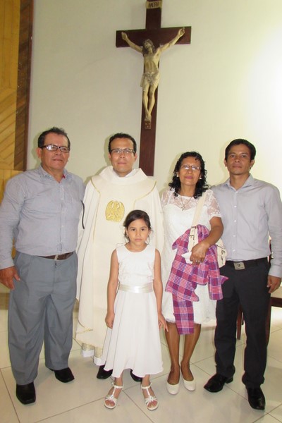 En primera fila de los asientos de la Parroquia estaban su padre Don Arturo Díaz Oroche y su mamá Doña Irma Manuyama de Díaz, compartiendo en la ceremonia con emoción la Ordenación Sacerdotal del hijo que trajeron al mundo y que por el mundo irá en nombre de Cristo Jesús predicando su palabra, en tanto lo indiquen sus superiores de la Iglesia.