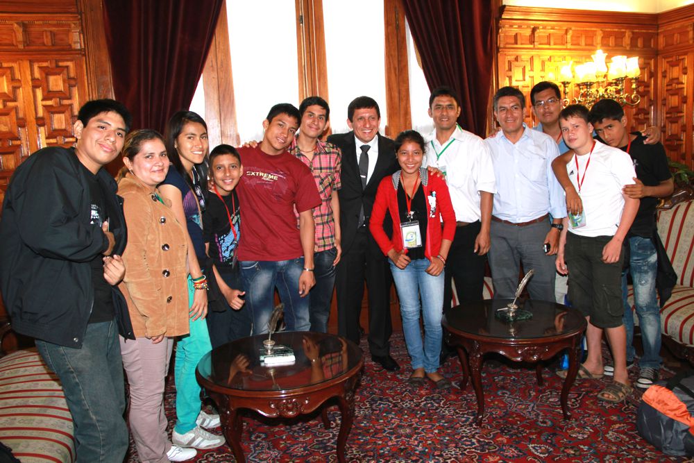 El presidente del Congreso, Víctor Isla Rojas, recibió esta mañana la visita de una delegación de estudiantes de la región Loreto que destacaron durante la IX Olimpiada Nacional Escolar de Matemáticas -ONEM 2012, evento que congregó a menores de centros educativos públicos y privados de educación secundaria de todo el país.