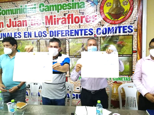 Agregando que luego del convenio marco, vendrían otros convenios específicos para el saneamiento etc. en el objetivo de titular a toda la comunidad campesina de San Juan. La noticia se dio el pasado viernes 14 de mayo luego de la reunión que sostuvieron el alcalde de San Juan Martín Arévalo, con la junta directiva de la CCDSJ que preside Eduardo Montalván Zúñiga. Acto al que asistieron varios representantes de los comités de desarrollo comunal.