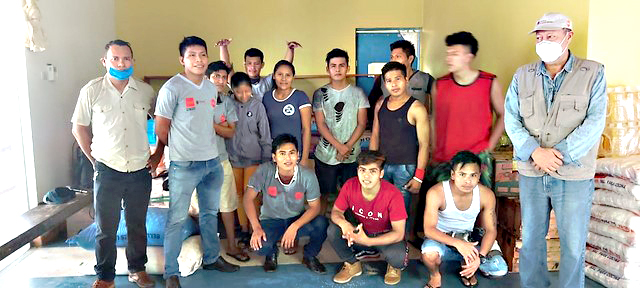 La donación se entregó en la casa arrendada por el gobierno regional de Loreto, donde viven los estudiantes indígenas. Los artículos entregados fueron 15 sacos de arroz, 4 sacos de azúcar, 4 sacos de sal, menestras, lenteja y alverja (150 kg).