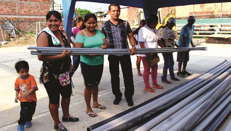 Los vecinos de la calle 03 de Junio del AH 28 de Julio gestionaron el apoyo con materiales para la conexión de agua potable, al conocer sobre la situación que atraviesan estos pobladores, el burgomaestre punchanino accedió a la compra de tuberías y demás materiales entregados ayer en horas de la mañana.