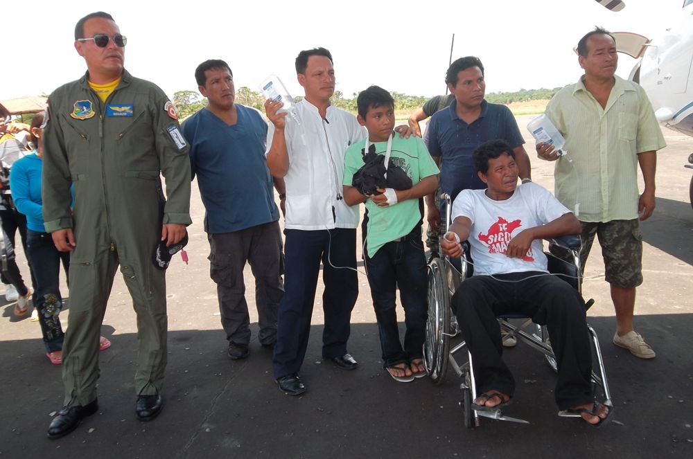 Julio César Cumapa Rios, corresponsal de El Estrecho.- Al promediar el medio día de ayer, fueron trasladado vía aérea en el avión de la FAP los pacientes Gilberto Risco Andrade de 41 años de edad con el diagnóstico de apendicitis aguda y el adolescente Édinson Gómez Lanza de 13 años de edad con el diagnóstico Mano derecha herida grave con pérdida de 3 dedos, índice, anular y cordial, producida por arma de fuego.