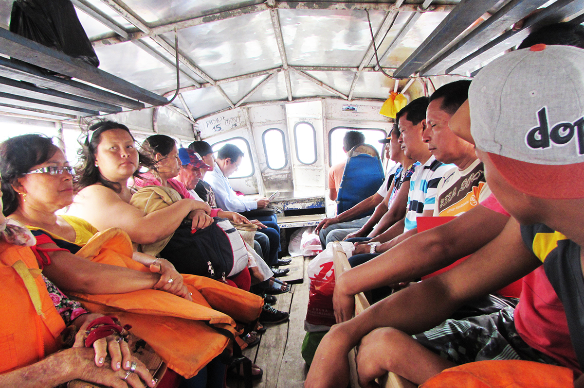 Primero se escuchó decir que tenía capacidad para 18 pasajeros, pero la gente seguía subiendo y pasaban los 20. Unos cuantos más decían los dos hombres (motorista y ayudante) que seguían llamando más pasajeros. Se llegó a sumar 24 adultos, más 5 niños que iban recostados junto a sus mamás. Más los dos responsables de la embarcación, en total 31 personas. Y todavía la señora que cobraba decía que hay espacio para 5 personas más.