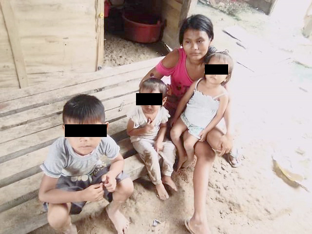 La joven madre de familia fue abandonada por su pareja, ahora lucha día a día para subsistir lavando ropa de sus vecinos a cambio de comida, pero, muchas veces ni siquiera puede trabajar debido a que sus hijos son aún bastante pequeños.